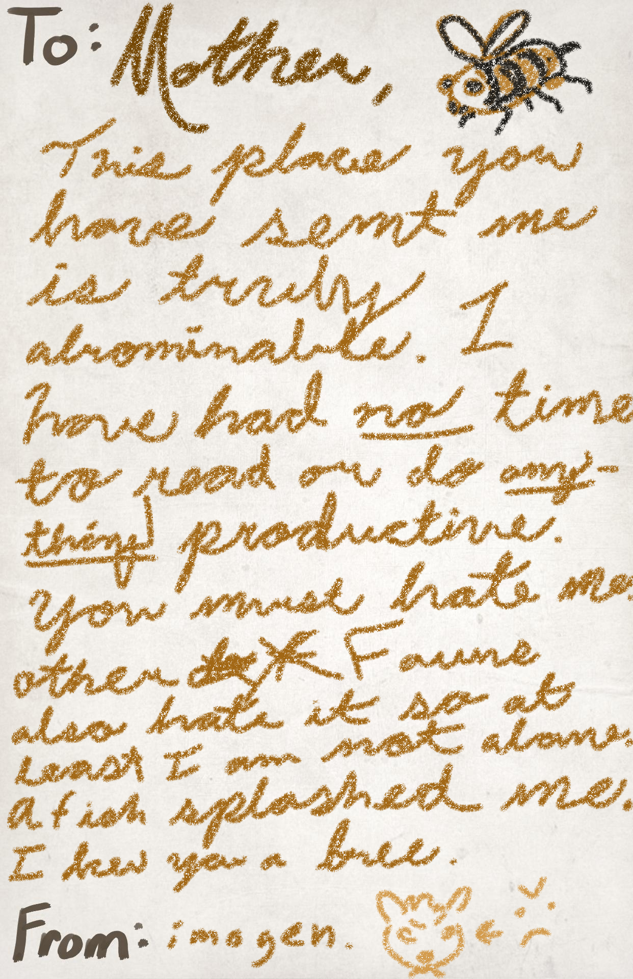 I drew you a bee. I will see you soon.