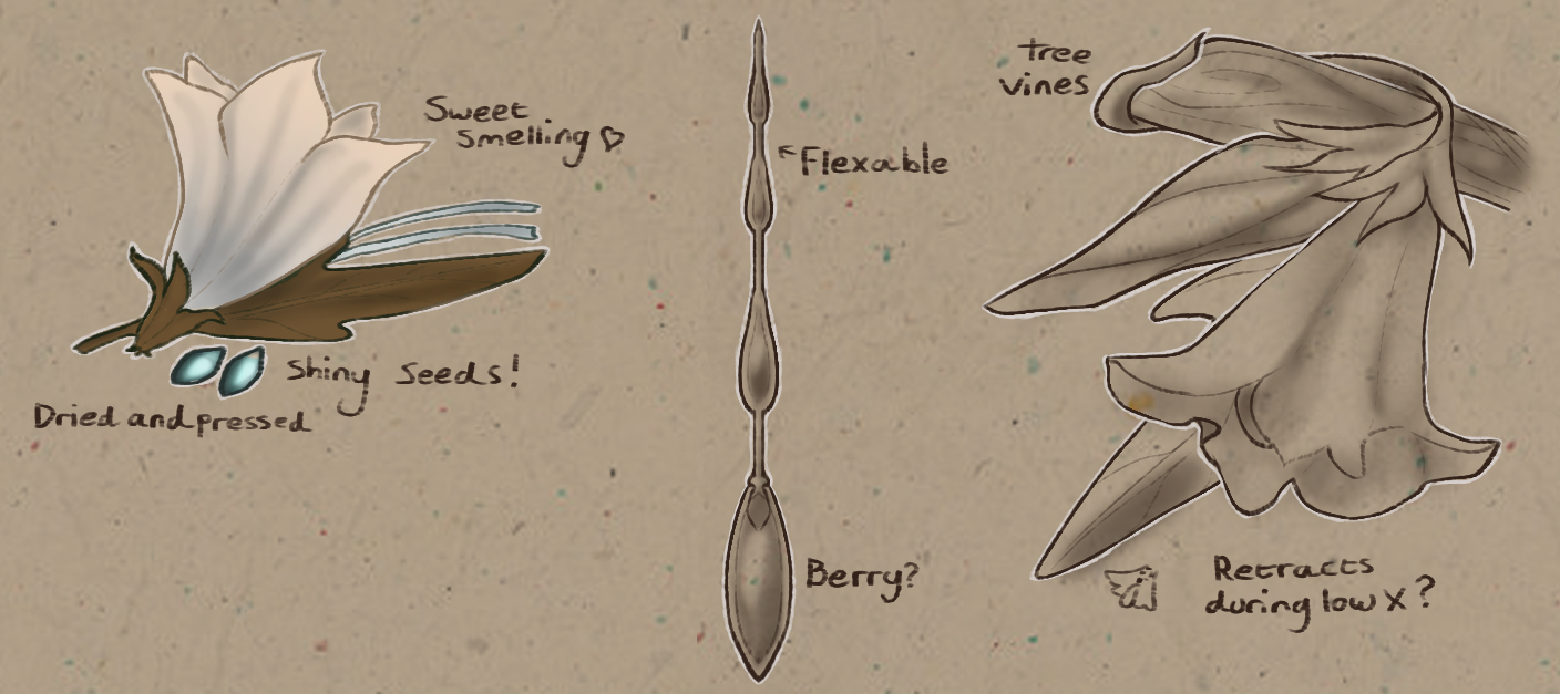 It grows parasitically, winding itself around host trees and slowly blanketing them in a lattice of thin and reaching vines. The droplets it secretes proudly glow in the dark, luring prey in with a blue shimmer before trapping them. Though beautiful, the vine’s slow consumption of its host is often seen as a quiet warning: not all pretty things are harmless.